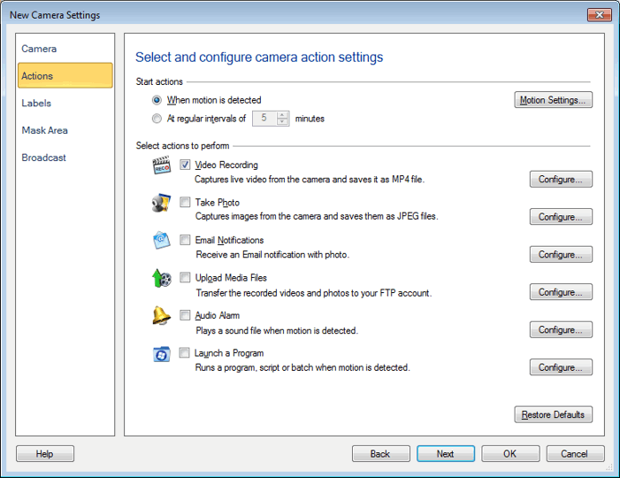 Para activar una alerta cuando se detecta movimiento, haga clic derecho y seleccione Editar cámara >> Acciones Y seleccione la opción Cuando se detecta movimiento.