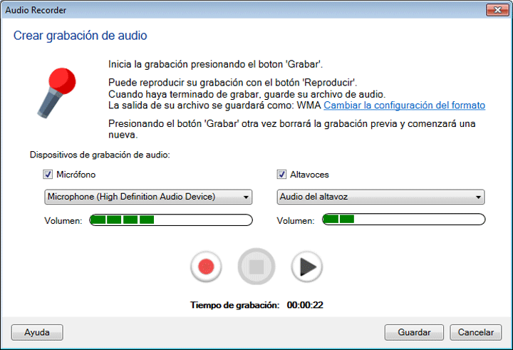 | Pantalla de grabación con audio de parlantes y micrófonos |