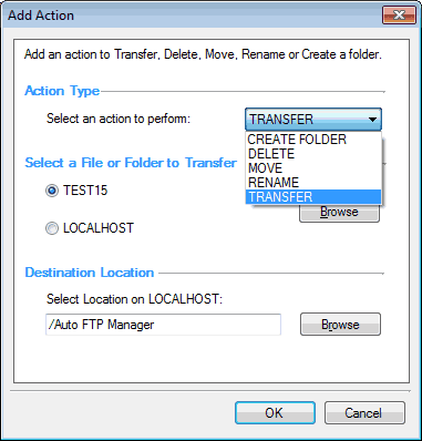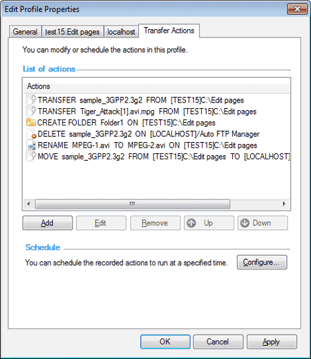 A list of the recorded actions appears that can be modified as required. With the Add button you can include more actions such as transfer, delete, move, rename, and create a folder. You can also edit and remove a selected action.