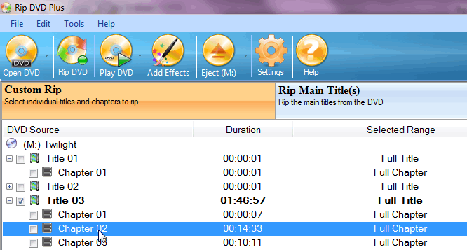 When you add DVD, Rip DVD Plus scans the DVD files for titles and enumerates all the title set present in the DVD: