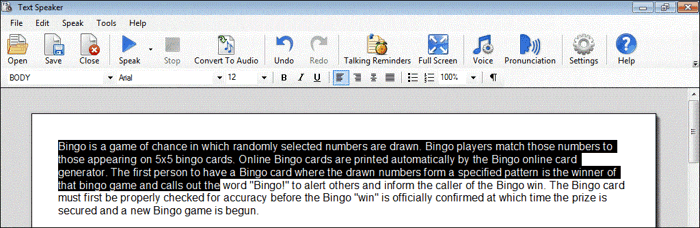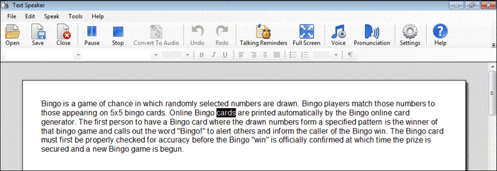 Writers, editors, and students can use this style of proofreading to listen to the flow of their document and the usage of words. If the document is too long, you can proofread it in parts. With Text Speaker, you have an option to highlight a part of document and listen to only the selection. Select the desired part by dragging the mouse cursor and click Speak >> Speak Highlighted Text.