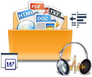 - Convert text documents to MP3 or WAV files for listening anywhere